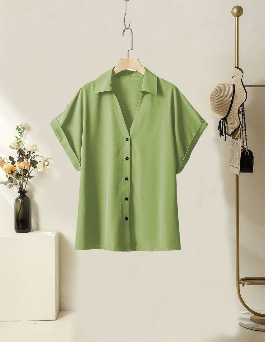 This refreshing light green short-sleeve button-up shirt brings a touch of elegance to your casual wardrobe. With a relaxed fit, breathable fabric, and a timeless collar design, it’s perfect for warm days or layering for a chic, versatile look. Pair it with your favorite bottoms for a fresh and modern outfit!
