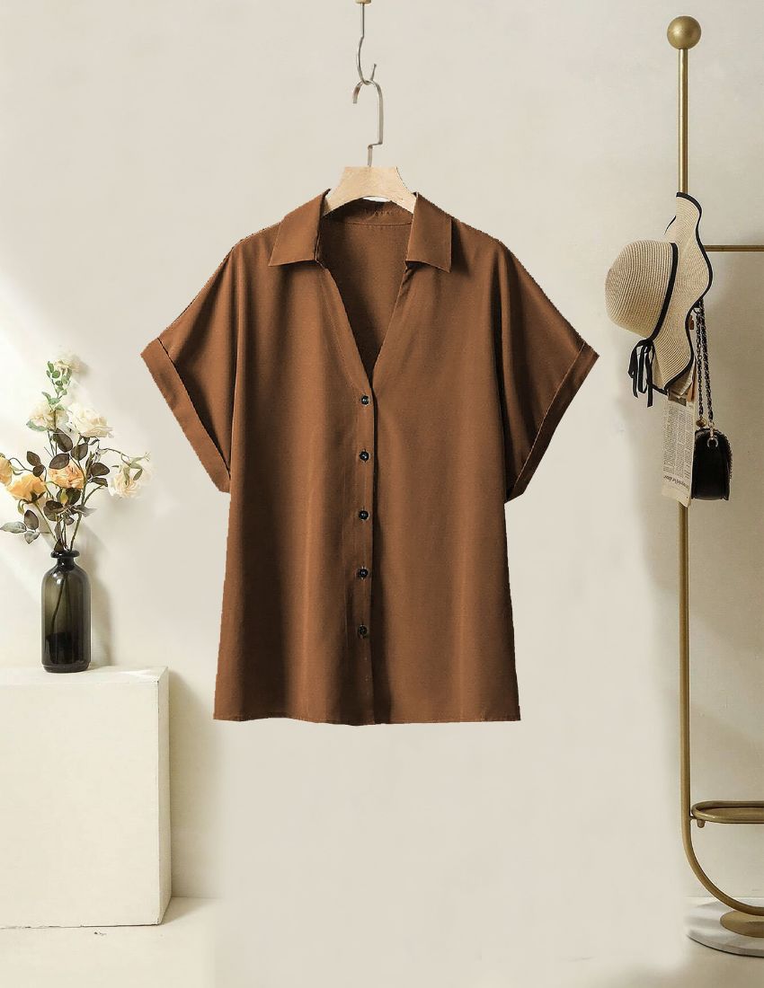 This rich penny brown short-sleeve button-up shirt is a perfect blend of elegance and comfort. Designed with a relaxed fit, breathable fabric, and a classic collar, it’s a versatile piece for any season. Pair it with denim for a casual look or tailored pants for a sophisticated touch!
