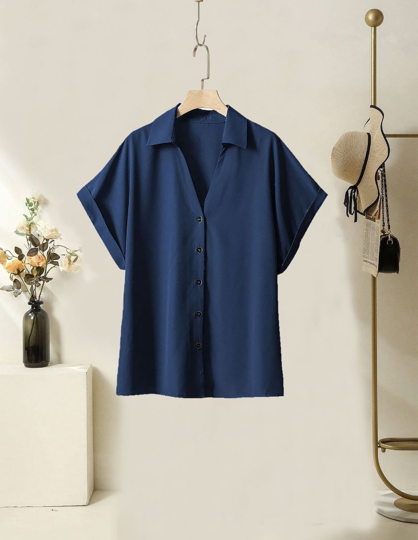 Elevate your wardrobe with this Prussian blue short-sleeve button-up shirt. Featuring a relaxed fit, soft breathable fabric, and a classic collar, this versatile piece is perfect for both casual and semi-formal looks. Pair it with jeans, trousers, or skirts for a yet effortless style!